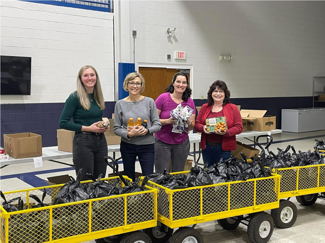 Liv Pilon, Cyndi Kane, Tina Graver and Sandy Naragon packed some yummy items for kids at Innes Middle School whose families have food insecurity.