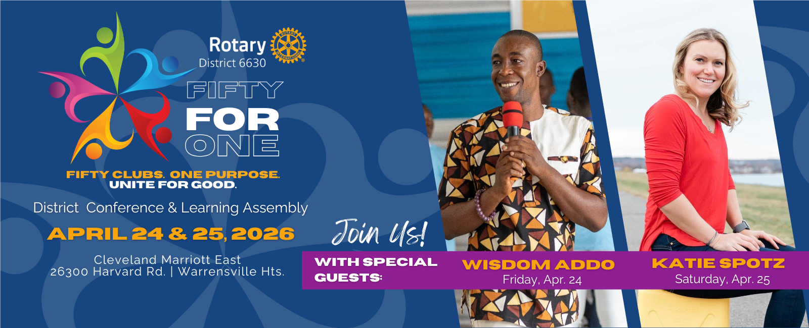 We’re excited to invite you to the District 6630 Conference of Clubs & DLA. Registration is NOW OPEN! This year's updated schedule is designed to make the event more accessible and welcoming for everyone. We look forward to coming together for meaningful conversations, inspiring speakers, and time with fellow Rotarians.