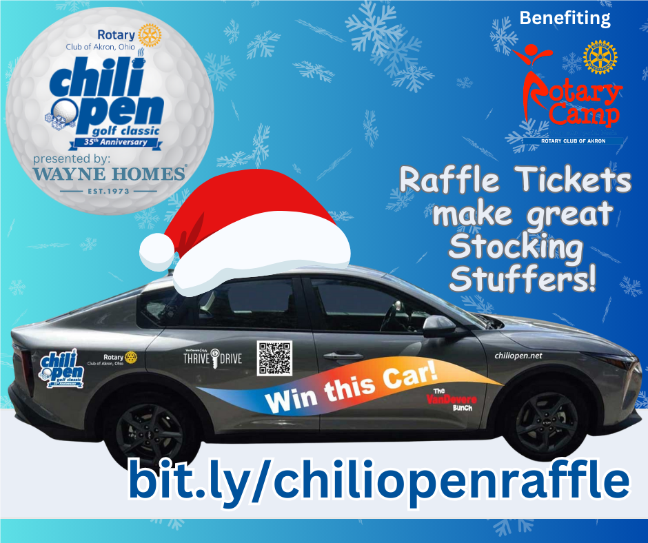 The holiday season is here, and soon after we will celebrate the 35th Annual Chili Open Golf Classic! With just over a month to go, we need everyone's support to ensure this event is another remarkable success! Make sure to grab your raffle tickets today; they make excellent stocking stuffers! You, a family member, or a colleague could be the fortunate winner of one of these amazing prizes: - 1st prize is a 2025 KIA K4, or $16,000 cash prize – Thank you The VanDevere Bunch!