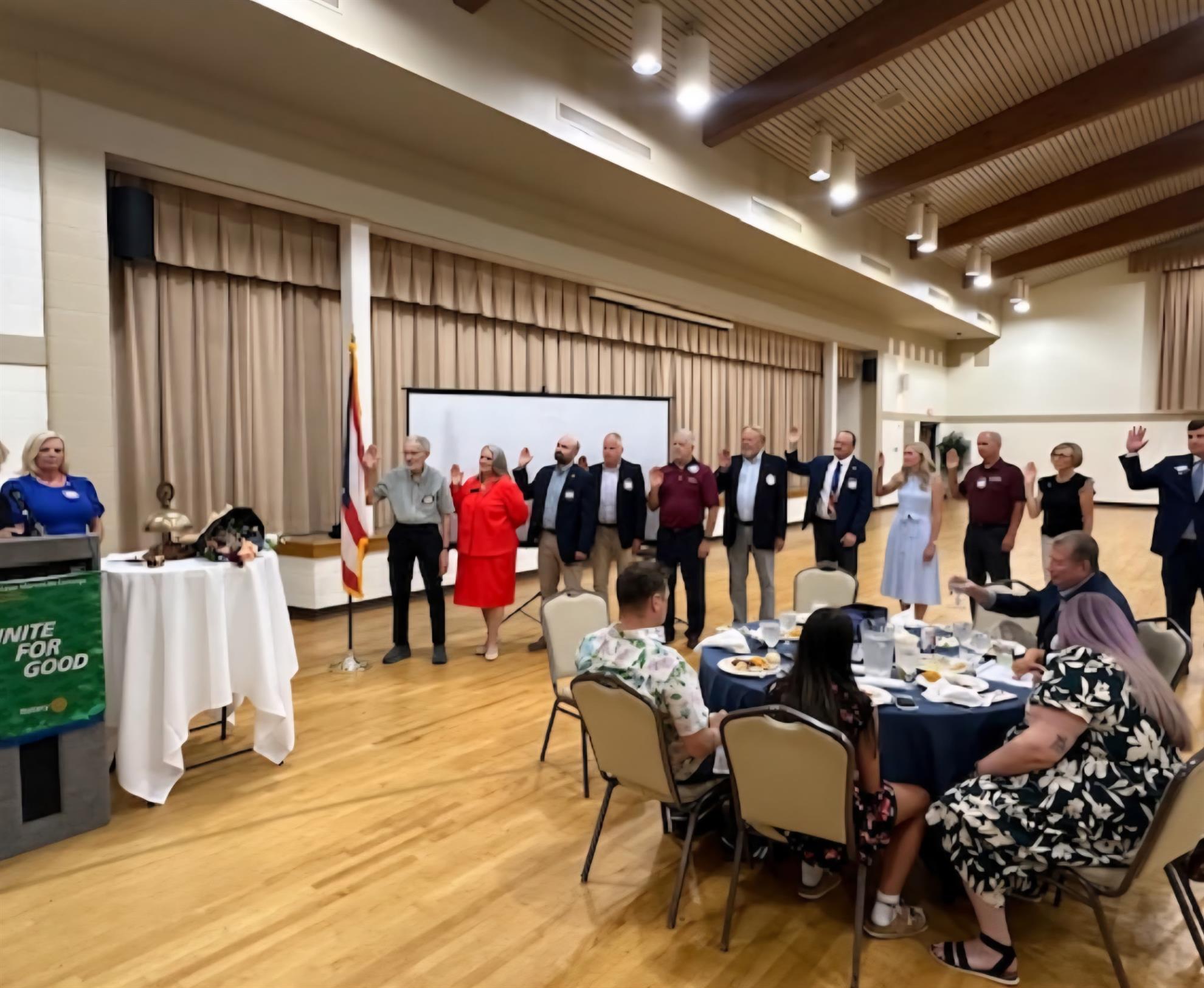 Katy Miller was sworn in as the 2025-2026 President of The Rotary Club of Akron on July 8, 2025 by her dear friend and Past District Governor Julie Brandle. The 2025-2026 Board of Directors was also installed.